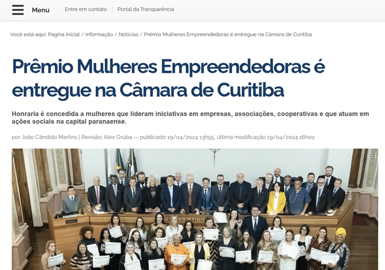 Notícia do Portal Câmara de Curitiba